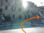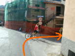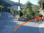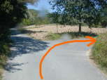 All'altezza di una stradina privata sulla destra chiusa da una sbarra verde la strada piega con un tornante a sinistra