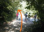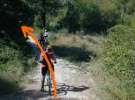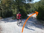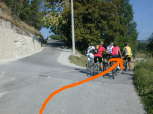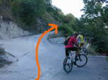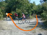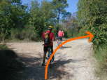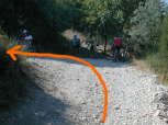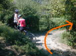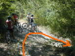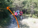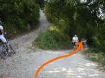 Al termine della discesa si prosegue dritti in salita su fondo ripido e sconnesso che rende difficoltoso il rimanere in sella. Dopo la rampa lo stradello si restringe fino a divenire un vero e proprio sentiero. Si continua con divertenti saliscendi molto "tecnici"