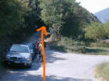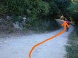 In corrispondenza di un tornante a sinistra continuiamo dritti in salita su fondo sassoso