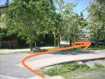 ...si svolta poi a destra nel parcheggio di fronte ai campi sportivi.