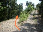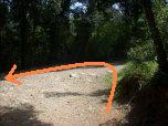 Si lascia l'asfalto che prosegue verso altri ripetitori e si gira a sinistra sulla sterrata in discesa. |