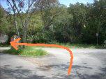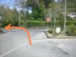 Al tornante si gira a sinistra lasciando la pista chiusa da una sbarra sulla destra.