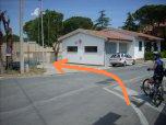 La ciclabile termina sulla stradina per la spiaggia della feniglia. Si gira a destra superando un'area sosta camper. |