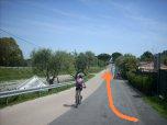 Prima del sottopasso della ferrovia si gira a sinistra sulla ciclabile (lavori a maggio '12) proseguendo piacevolmente in piano per oltre 4 km. |