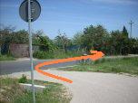 L'asfalto termina all'ingresso del campo di golf. Si continua sulla sterrata di sinistra. |