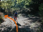 Oltrepassati un cancello in legno e due deviazioni, in cui rimaniamo sulla sinistra, la sterrata volta bruscamente a destra (km 6,8) con una curva a gomito dando la sensazione di ritornare indietro. |