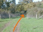 Ad un bivio a Y si prende a destra, si supera una staccionata e si prende uno stradello che sale verso sinistra. ( a luglio 2018 segnalata la presenza di un cancello) Dopo 200 metri si arriva su un campo coltivato. La stradina piega destra sul bordo del campo con una ripida salita. Al termine della salita, in cima alla collina, la stradina svolta a sinistra puntando verso un casolare.