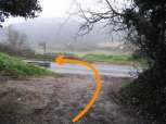 Si prosegue in discesa su fondo sterrato alternato con resti di asfalto, ignorando tutte le deviazioni. Si attraversa un fosso (c'è un ponticello metallico sulla sinistra). Nei periodi piovosi la strada diventa fangosa e profondamente solcata dall'acqua. |