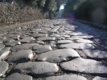 Al incrocio con l'Appia Antica, si va a sinistra. Per evitare di pedalare sul basolato romano, a tratti si possono seguire (con prudenza!) i divertenti single track che si trovano su entrambi i lati della carreggiata. |