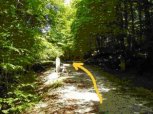 Dopo circa 600 metri tralasciare il sentiero che diparte sulla destra e proseguire sulla sterrata principale che effettua un ampio tornante verso sinistra. |