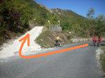 Al termine della discesa si guada un piccolo ruscelletto e subito dopo si gira a sinistra su sterrato. La forte pendenza costringe a spingere la bici per un centinaio di m. Superata una sella si riprende a scendere facendo sempre attenzione al fondo sassoso.