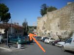 In corrispondenza di una curva a sinistra in discesa si prende lo stradellino, inizialmente asfaltato, che costeggia le mura. Particolarmente suggestivo è l'antico fontanile/lavatoio.