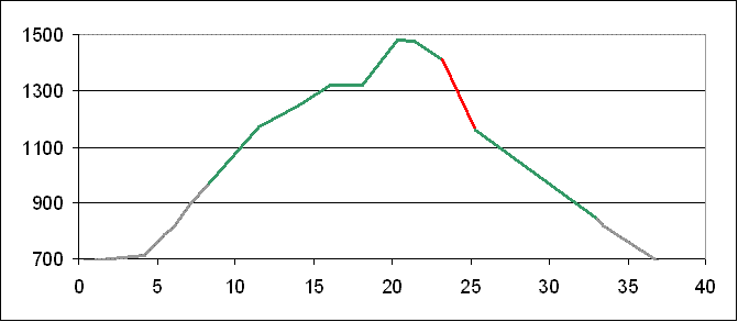 Dopo un ampia curva a destra la sterrata sembra risalire perdendosi poi nel fogliame. Se siete nel punto giusto (servono capacità di orientamento ed il GPS può facilmente perdere il segnale) trovate sugli alberi i segni giallo rossi del CAI. E' sufficiente seguirli nella valletta che scende a sinistra (valle bona). Nonostante l'assenza di traccia o di sentiero, quando non ci sono troppi rami, si riesce a rimanere per alcuni tratti in sella "navigando" nello spesso strato di foglie cercando il percorso migliore. |