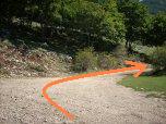 All'altezza di una radura erbosa attenzione ad individuare lo stretto sentierino (tracce di moto) che si stacca sulla sinistra. Si scende - con un pò di tecnica - verso il fondo del vallone. |