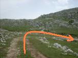 Si prende una pista che si stacca sulla destra. Si continua a salire alternando rampe mai proibitive a tratti pianeggianti. Si continua per circa 5 km intorno a quota 1850 in un ambiente selvaggio spaziando con la vista dal Velino alla valle di Avezzano. Ad un certo punto la pista sembra terminare in un prato ma è sufficiente seguire le tracce degli pneumatici per ritrovarla un centinaio di metri dopo. Intorno al km 15.5 si incontra un fontanile.