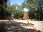 Al tornante si gira a sinistra lasciando la pista chiusa da una sbarra sulla destra.